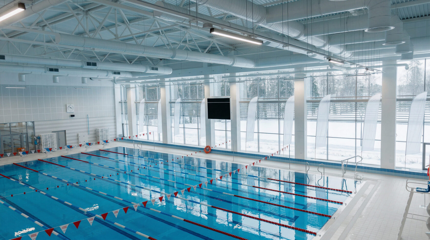 В комплексе будут представлены: тренажёрный зал, бассейн на 8 дорожек, детские бассейны и ванны для грудничков, зона серфинга, студии сайкла, групповых программ, пилатеса, йоги и растяжки, залы для единоборств и борьбы, сквош-корты, гимнастический и танцевальный залы, а также зоны восстановления.